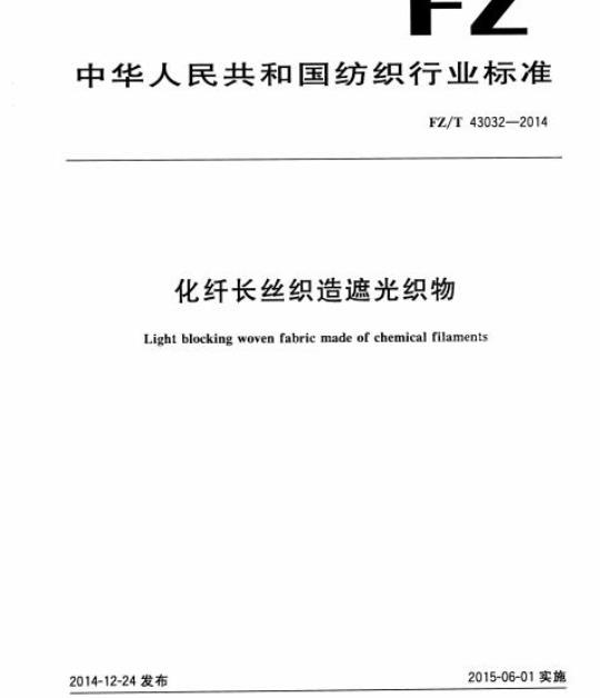 FZ/T 43032适用于通过织人黑色长丝达到遮光效果的化纤长丝机织物。本标准不适用于通过植绒、除层.复合.印染等后加工达到遮光效果的织物。