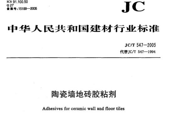 JT/T 547-2005 Adhesives for ceramic wall and floor tiles.