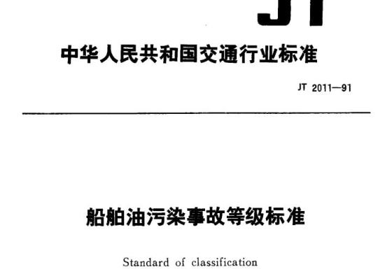 JT 2011规定了船舶油污染事故等级的划分,作为各交通部门管理和统计船舶油污染事故的评定依据。