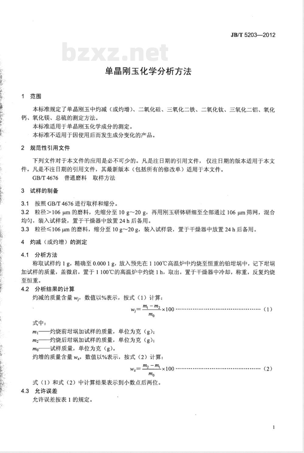 本标准规定了单晶刚玉中灼减(或灼增)、二氧化硅、三氧化二铁、二氧化钛、三氧化二铝、氧化钙、氧化镁、总硫的测定方法。本标准适用于单晶刚玉化学成分的测定。本标准不适用于因使用后而发生成分变化的产品。2规范性引用文件
