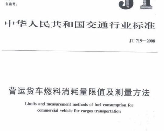 JT 719-2008 Limits and measurement methods of fuel consumption for commercial vehicle for cargos transportation.