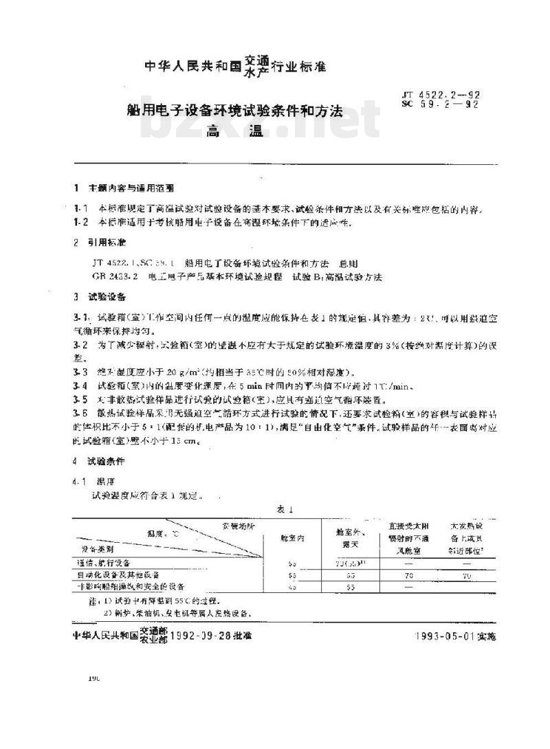 1.2 JT 4522.2适用于考核船用电子设备在高温环境条件下的适向性。