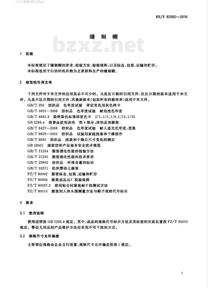 FZ/T 82002适用于以纺织机织物为主要原料生产的缝制帽.