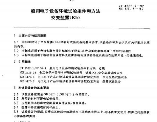 中文名称:船用电子设备环境试验条件和方法交变盐雾(Kb)