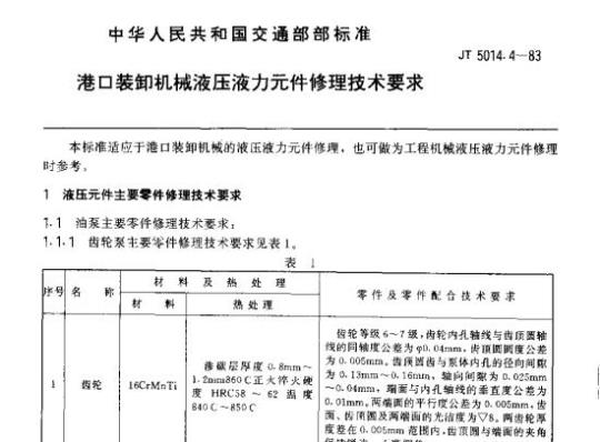 JT 5014.4适应于港口装卸机械的液压液力元件修理,也可做为工程机槭液压液力元件修理时参考。