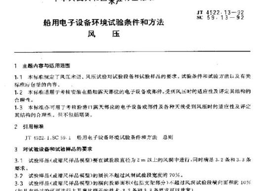 1.2 JT 4522.13适用于考核安装在船舶露天部位的电子设备或部件.受到风医时的适应性及评定其结构的合理性。