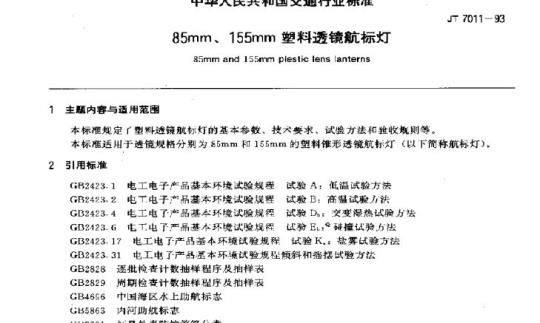 &smm and 155mrn Fiestic lens lanterns本标推规定『塑些透镜航格灯的基去参数、技六要求,试验方法和验收规则等。JT 7011— 93