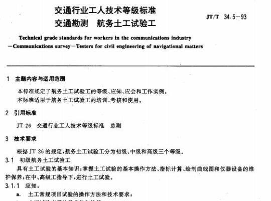 根错IT6萄规定,航务土工试验工分火初额.中级杠高级三个等级。3.1机级航务土工试验工