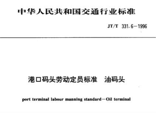 本标准是计对梗用专用装御机机和装卸工艺进行油类装卸作业制定的劣动定员。本标准为由个标非构求的港口码头劳动定显系刻标兼中的一个标他,这七个标准是,JT/T331.1995带口好头劳效定标准,本语T331.2-1926