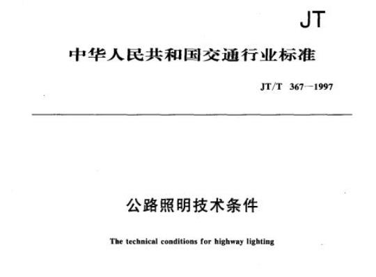 JT/T 367规定了公路照明光源、灯具、灯杆、照明的视觉条件、照明标准推荐值以及供电、节能等技术要求。