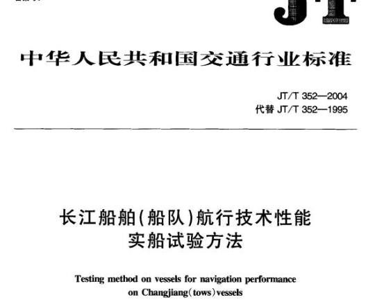 JT/T 352-2004 Testing method on vessels for navigation performance on Changjiang( tows ) vessels.