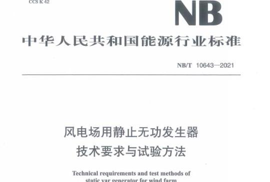 NB/T 10643规定了用于风电场的静止无功发生器的使用条件、技术要求、试验方法、检验规则,以及标志、铭牌、包装、运输与贮存等。