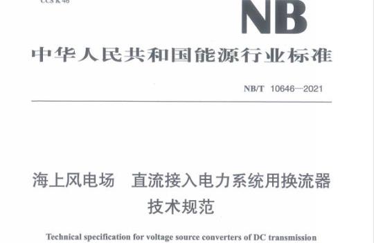 NB/T 10646适用海上风电场直流接入电力系统用换流器。