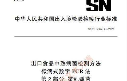 SN/T5364一2021《出口食品中致病菌检测方法微滴式数字PCR法》共分为8个部分第1部分:副溶血性弧菌