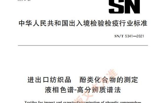 Textiles for import and exportDetermination of phenolic compounds-Liquid chromatography-high resolution mass spectrometry method2021-11-22发布