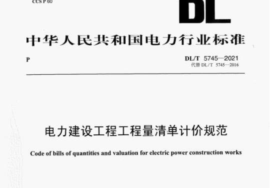 电力建设工程工程量清单计价规范Code of bills of guantities and valuation for electric power construction worksDL/T5745-2021