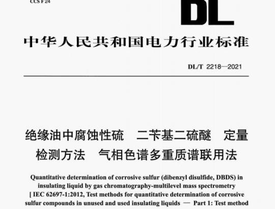 DL/T 2218规定了气相色谱多重质谱联用测定绝缘油中腐蚀性硫(二苄基二硫醚)方法。
