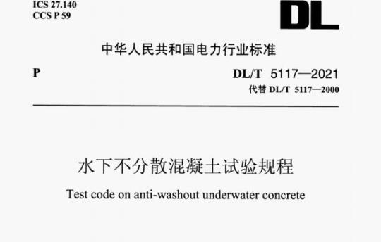 Test code on anti-washout underwater concreteDL/T5117—2021