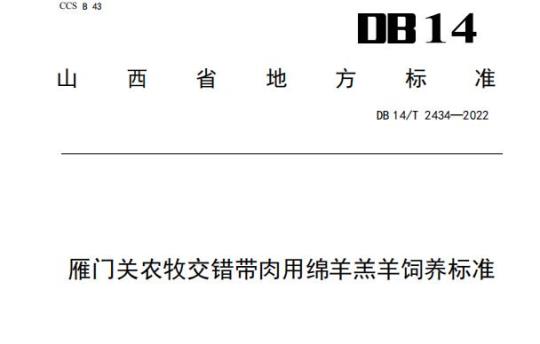 DB14/T 2434适用于雁门关农牧交错带舍饲、半舍饲条件下20 kg~35 kg肉用绵羊羔羊。