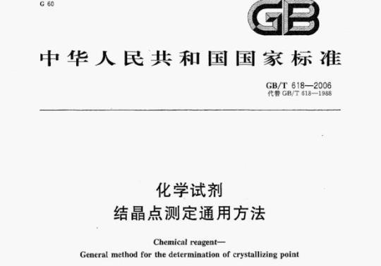 GB/T 618适用于结晶点在一7℃~70℃范围内的有机试剂结晶点的测定。