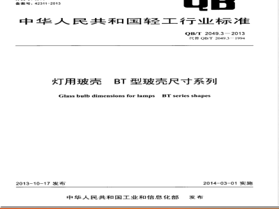 QB/T2049《灯用玻壳》为系列标准,现有11个部分:A型玻壳尺寸系列;