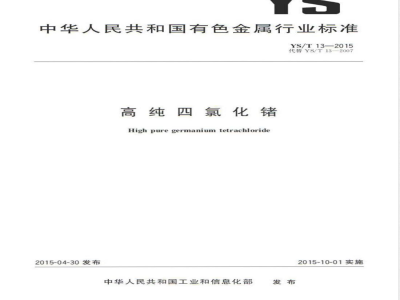 本标准按照GB/T1.1-2009给出的规则起草本标准代替YS/T13—2007《高纯四氯化锗》。本标准与YS/T13—2007相比,主要有如下变动:增加了牌号GeCl-08的Zn、Pb、As、Mg、In、AI杂质含量的要求:YS/T13—2015