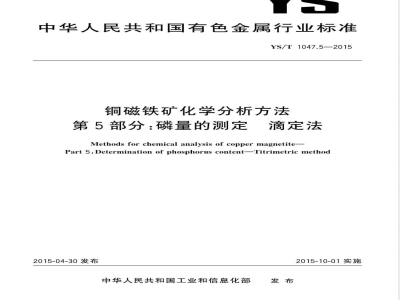 YS/T1047的本部分规定了铜磁铁矿中磷含量的测定方法。滴定法