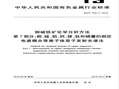 第7部分:铜、锰、铝、钙、镁、钛和磷量的测定电感耦合等离子体原子发射光谱法YS/T1047.7—2015