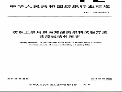 英文名称:Testing method for polyacrylic sizes used in textile warp sizing—Determination of alkali solubility of sizing film