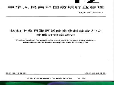英文名称:Testing method for polyacrylic sizes used in textile warp sizing—Determination of water absorption rate of sizing film