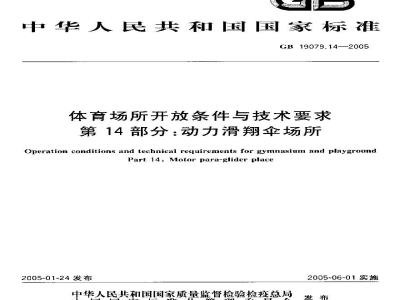 本部分规定了动力滑翔伞场所开放所应具备的基本条件和基本要求。本部分适用于向社会开放的各类动力滑翔伞场所。 GB 19079.14-2005 体育场所开放条件与技术要求 第14部分:动力伞场所 GB19079.14-2005 标准下载解压密码:www.bzxz.net