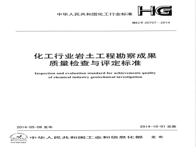 Inspection and evaluation standard for achievements qualityof chemical industrygeotechnical investigation2014-05-06发布
