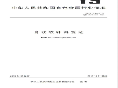 本标准代替YS/T93—1996《膏状软钎料规范》。本标准与YS/T93—1996相比,主要有如下