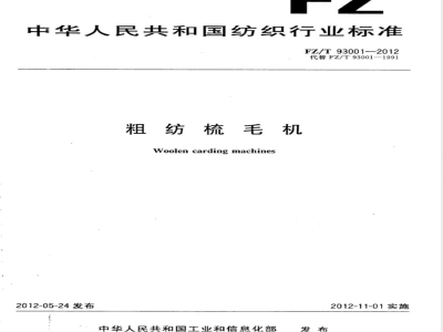 本标准按照GB/T1.1一2009给出的规则起草。本标准代替FZ/T93001一1991《分条式梳毛机》。本标准与FZ/T93001一1991相比,主要差异如下:修改了标准名称,由“分条式梳毛机”改为“粗纺梳毛机”;修改了适用范围(见第1章);