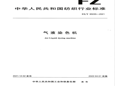 GB/T5226.1一2019机械电气安全机械电气设备第1部分:通用技术条件GB/T7111.7纺织机械噪声测试规范第7部分:染整机械GB/T17780.1一2012纺织机械安全要求第1部分:通用要求GB/T17780.72012纺织机械安全要求第7部分:染整机械FZ/T90074纺织机械产品涂装