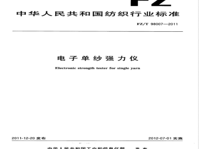 本标准规定了电子单纱强力仪的基本功能和参数、要求、试验方法、检验规则、标志、包装、运输和贮存。本标准适用于等速伸长检测法检测各种纱线强力的电子单纱强力仪。2规范性引用文件