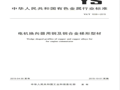 电机换向器用铜及铜合金梯形型材YS/T1038-—2015
