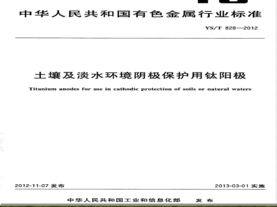 土壤及淡水环境阴极保护用钛阳极YS/T828—2012