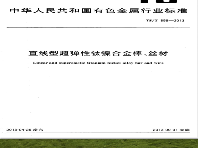直线型超弹性钛镍合金棒、丝材YS/T 859--2013