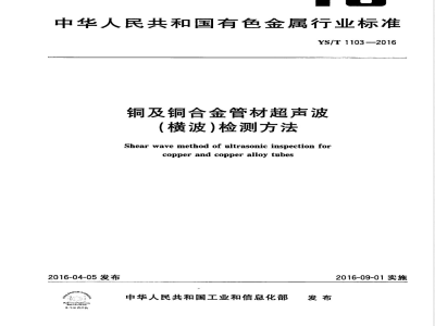 本标准规定了铜及铜合金管材超声波横波检测方法。YS/T1103—2016