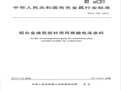 铝合金建筑型材用丙烯酸电泳涂料YS/T728-2010