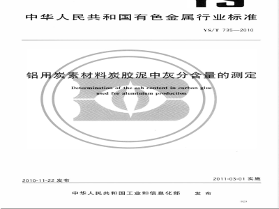 中文名称:铝用炭素材料炭胶泥中灰分含量的测定