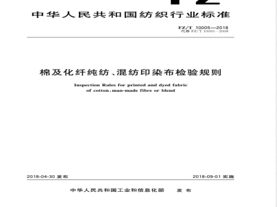 棉及化纤纯纺、混纺印染布检验规则FZ/T10005—2018