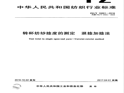 英文名称:Test twist in single open-end yarn—Untwist-retwist method