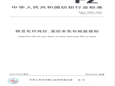 棉及化纤纯纺、混纺本色布检验规则FZ/T10004-2018