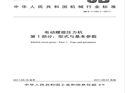 JB/T11194《电动螺旋压力机》分为两个部分:第1部分:型式与基本参数;