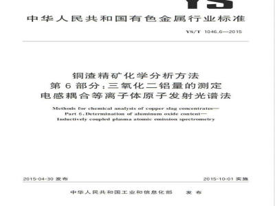 电感耦合等离子体原子发射光谱法YS/T1046的本部分规定了铜渣精矿中三氧化二铝含量的测定方法。YS/T1046.6-—2015