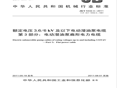 JB/T5332《额定电压3.6/6kV及以下电动潜油泵电缆》分为四个部分:第1部分:一般规定;
