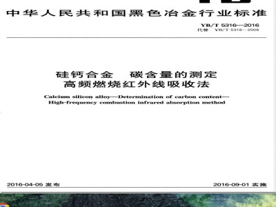 红外线吸收法测定碳量》,本标准与YB/T本标准代替YB/T5316—2006《硅钙合金化学分析方法5316一2006相比,除编辑性修改外,主要技术变化如下:-标准名称修改为《硅钙合金碳含量的测定高频燃烧红外线吸收法》;增加了警告;