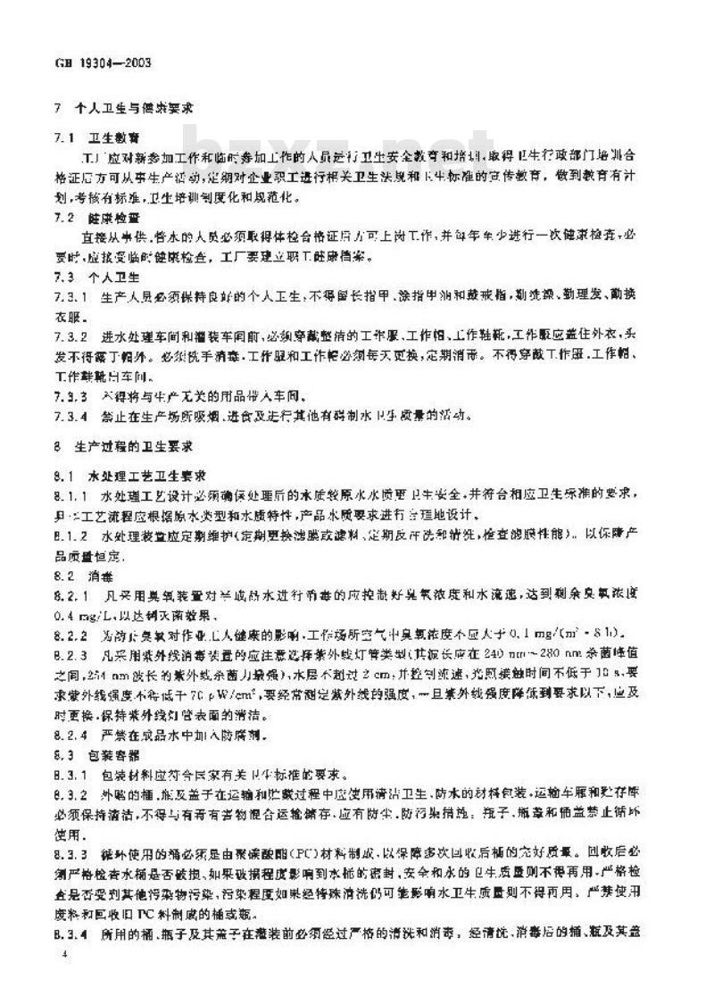8.3.3错外使用的必添足由聚候限明(PC)材料制成,以保障多次回收后插的究好质量。回收后必测严格检水是否破抱,如果破损程度影响到水筛的窃封,安全和水的卫生质盈则不伊再用-严格检查是否受到其他考物污染,污染程原如果经特殊清洗仍可能影响水卫生质量则不得雨用,严禁使用度将和包收旧代料制感的或瓶。B.3.4所用的桶,瓶子及其荒子在装前必萄经过严格的清洗和消毒,经请悦,消毒后的桶、瓶及其盖4